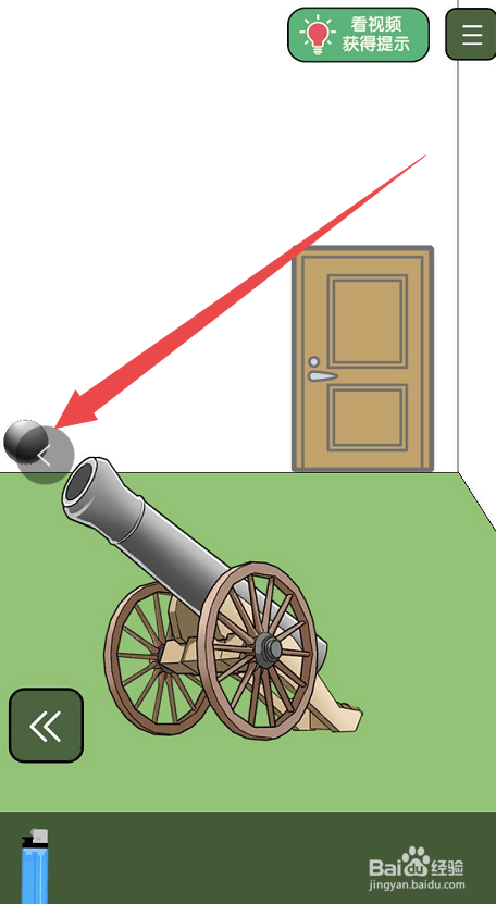 拿到地铁之后从头回到有大炮的房间内,将铁球移至大炮的炮筒处,这样就给大炮装上了炮弹,之后大炮后面就会呈现一个引线,然后将道具栏内的打火机移至引线处,这样就可以用打火机将引线点燃。