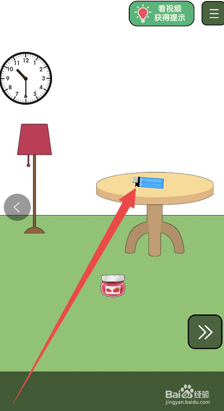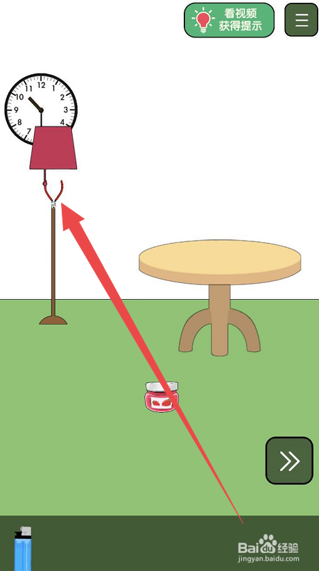 进入到具体的挑战页面之后,可以看见在布景中的桌子上有一个打火机,点击先收成打火机。