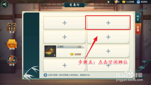 剑网3手游买卖步调五:打开“出售”界面今后。点击界面上余暇的摊位。