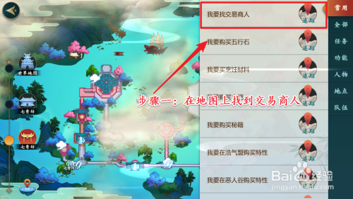 剑网3手游买卖步调一:游戏玩家打开宿世界地图,然后活着界地图中找到买卖商人NPC。