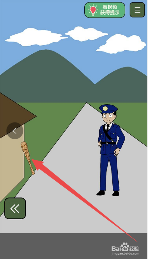 在房间外边有一个差人,在墙边还有一个狼牙棒,点击狼牙棒收成道具。