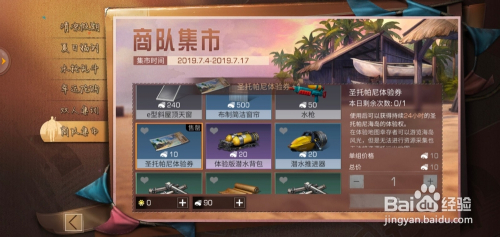 商队集市的页面,点击圣托帕尼体验券。