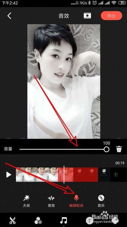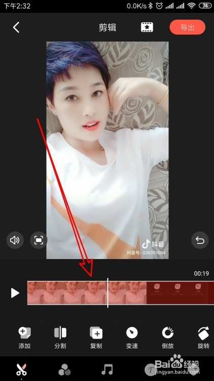 然后在打开的剪辑页面中,我们点击视频预览下面的播放节制条,定位到要插入配音的位置