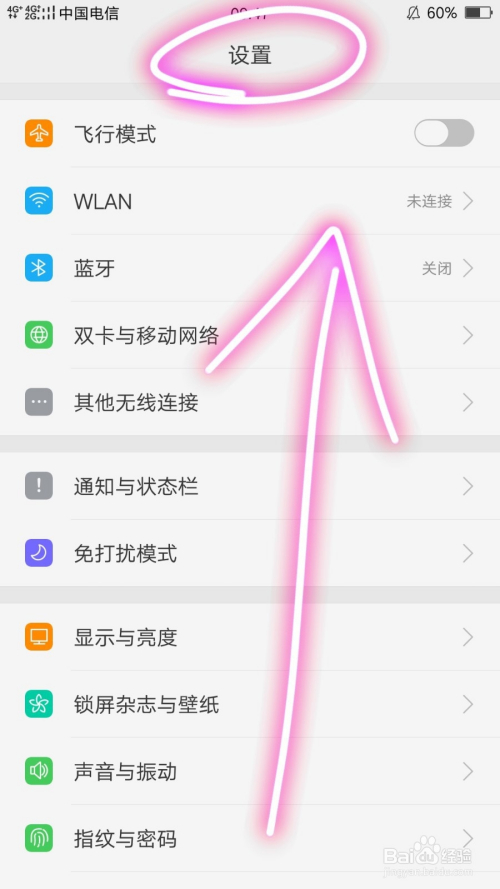 这时就可以看到手机的设置页面,经由过程滑脱手机页面可以看到更多的设置选项;