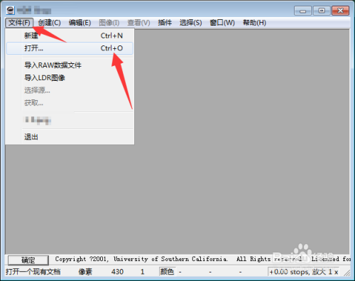 打开后点击菜单文件选择打开,也可以导入raw数据文件和ldr图像。