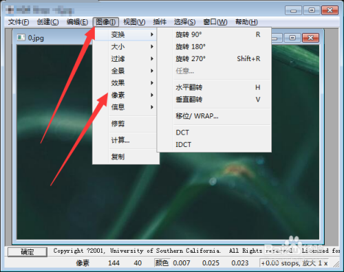 点击菜单栏图像,可以扭转图像、设置图像大小尺寸、过滤、全景、结果设置、像素设置、和裁剪图像等等,按照小我需要来利用。