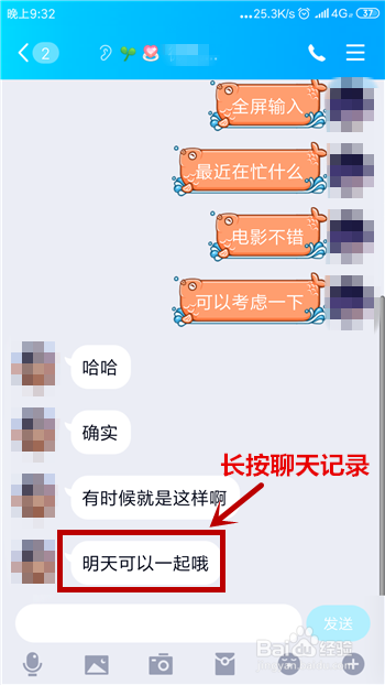 在和洽友的聊天界面里若是想截图某段聊天记实需要长按这个聊天记实。