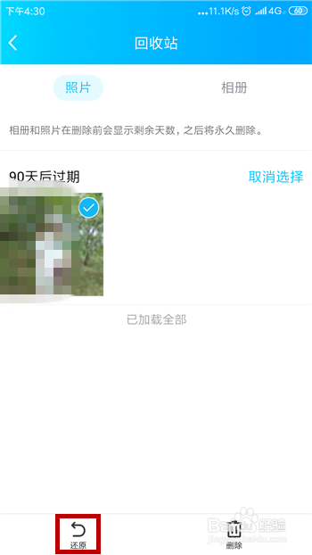 选择好后点击左下角的【还原】,这样删除的照片就恢复到QQ空间相册了。