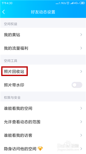 在老友的动态权限设置里即可看到【照片收受接管站】,点击打开它。