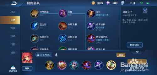 第六件装备,这里保举出贤者之书,这件装备是晋升我们的神通进犯和增添我们的生命值,为我们的生命获得必然的保障,后期可以出新生甲,或者辉月与其替代。