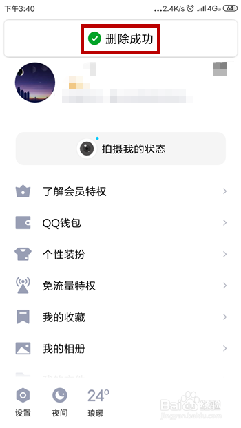 这样就会返回到更多界面,顶部会呈现【删除当作功】的提醒。