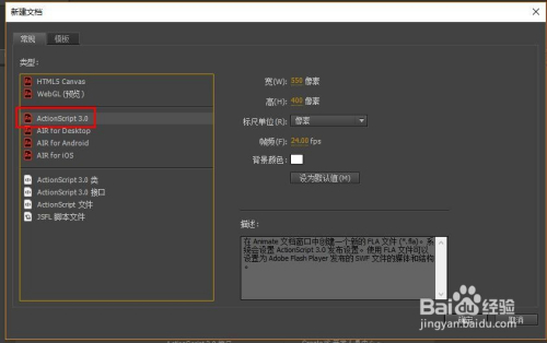 这里用的是Animate CC,打开软件,新建AS3文档。