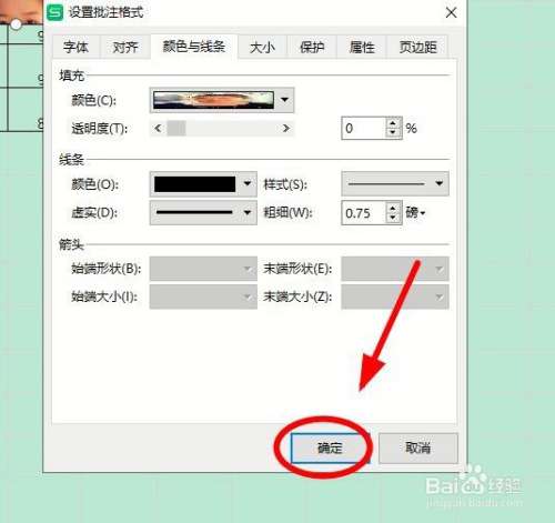 在“设置批注格局”对话框中,单击“颜色和线条”选项卡