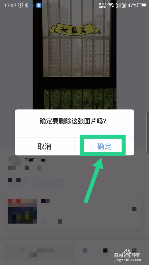 最后在屏幕中心弹出的窗口中,点击确定,就可以删除图片了。如图所示