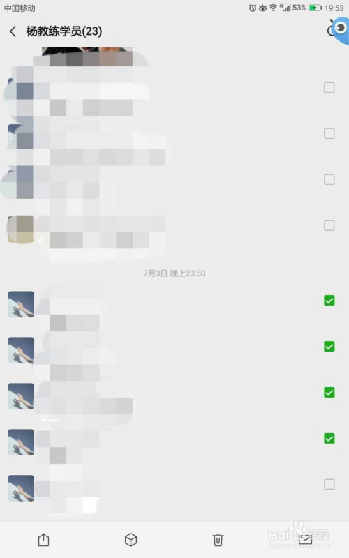 在聊天界面中,肆意长按一条动静记实,在弹出的选项中,点击最后一项“多选”。