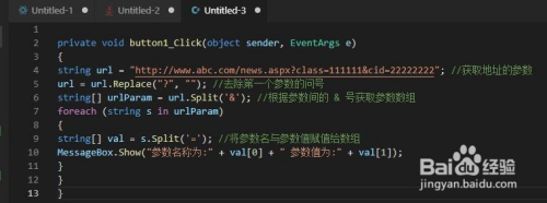 4、经由过程后台代码获取Web参数(C#)版本。如下所示,经由过程获取地址栏的毗连,然后编写代码,截取问号后面的字符,别离读出参数的ID和Value。