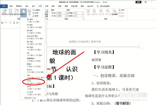鄙人拉菜单中,选择本身打印机撑持的纸张类型,好比“16开”