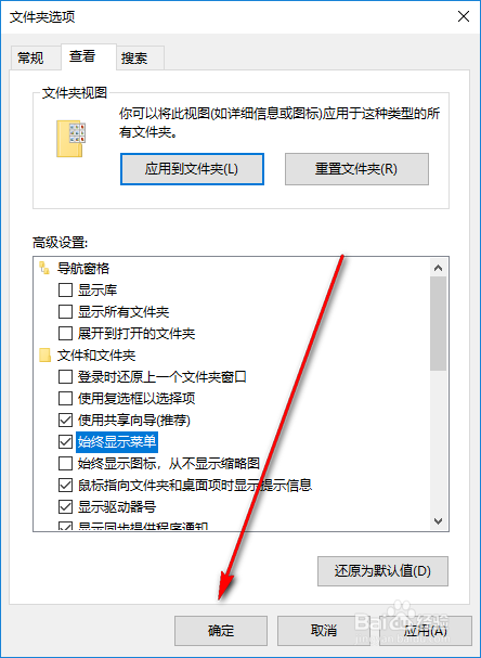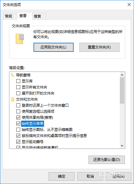勾选对话框中的“始终显示菜单”复选框;
