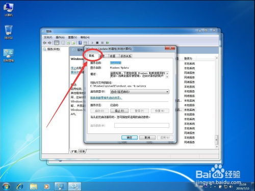 打开Windows Update属性设置后,点击上面的“常规”选项卡