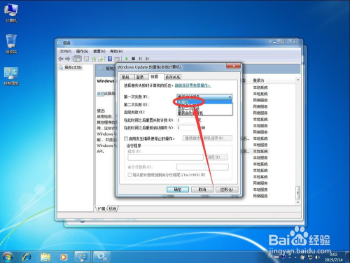 点击“第一次掉败”后面的“从头启动办事”打开下拉列表