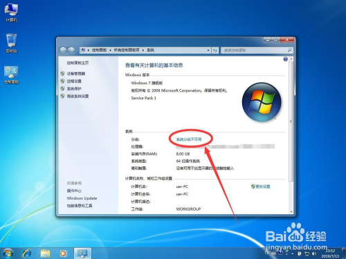 - 3打开系统属性后,点击“分级”一栏里的“系统分级不成用”