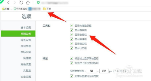- 注:以上步调用360浏览器演示,其他浏览器“显示收藏夹”同样在设置中。