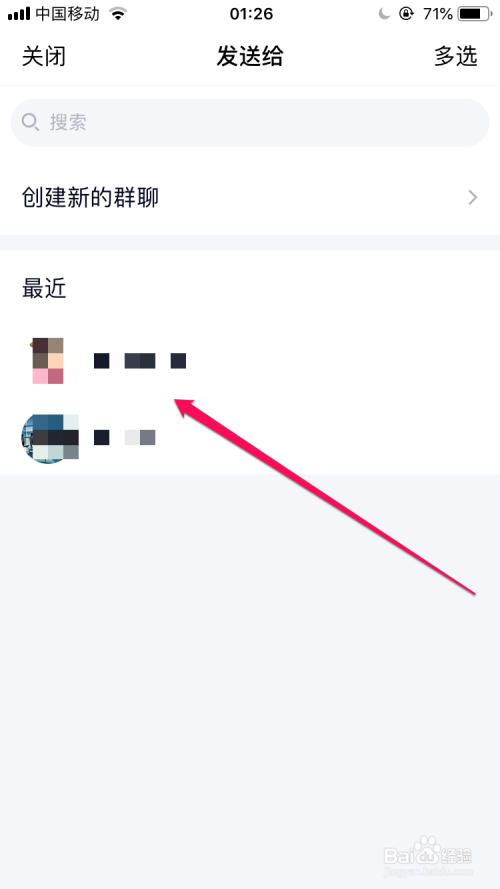 然后打开辟送给的界面中可以给群里、小我老友,在这以最新联系人老友为例,所以在界面中直接最新选择老友。