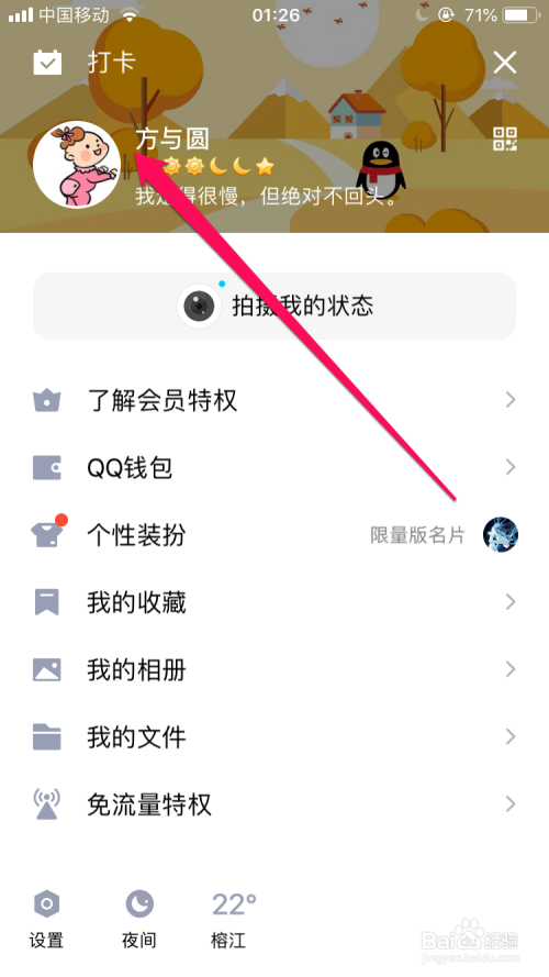 然后睁开帐号的资料界面中点击顶置封面区域位置。