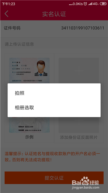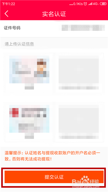 添加完身份证的正背面照片后点击底部的【提交认证】,经由过程后即可完当作实名认证。