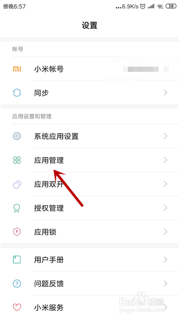 我们需要在设置里找到菜鸟裹裹,所以点击打开设置里的【应用办理】。