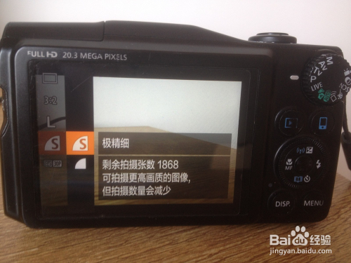 在设置完当作像素大小后,选择带有字母S的扇形标识,对画质进行设置,经由过程上下键或动弹方位键圆盘选择极邃密、邃密→按下“FUNC SET”键进行确认;按下“MENU”键退出。