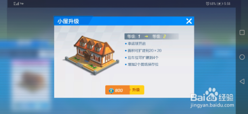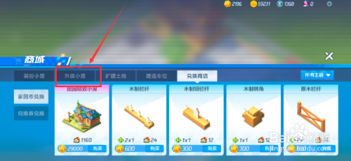 好比玩家当前的小屋是1级,此时在【进级小屋】页面会看到2级的小屋,接着点击它。