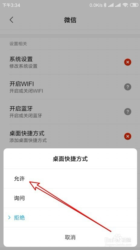这时辰就会打开微信的权限办理页面,在页面中找到桌面快捷体例的设置项