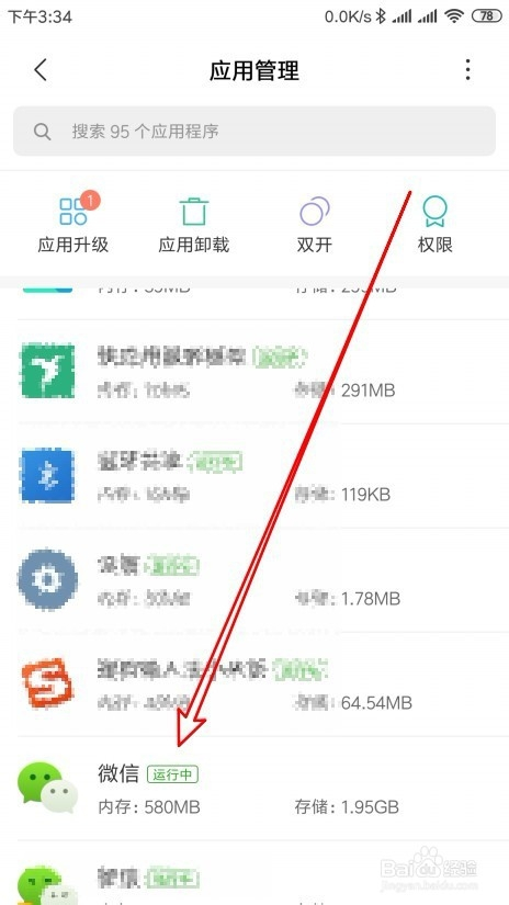 然后再打开他手机设置界面中,点击应用办理的菜单项