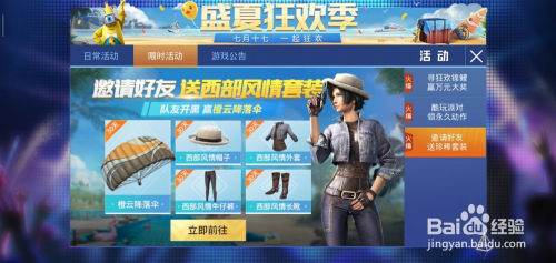 和平精英西部风情套装/橙云下降伞怎么获得?比来和平精英推出了良多活动,玩家们邀请老友介入游戏就有机遇获得西部风情套装/橙云下降伞,下面小编就来介绍一下具体攻略。