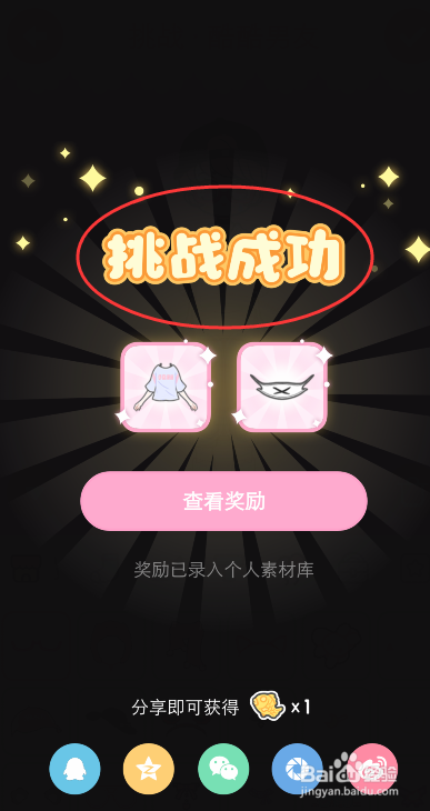 挑战当作功,就可以获得关卡奖励啦,如图所示。
