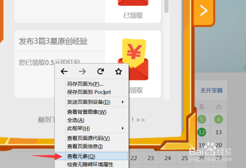 然后对着要点窜的那个网页文字或者红包收入数字,点击鼠标右键: