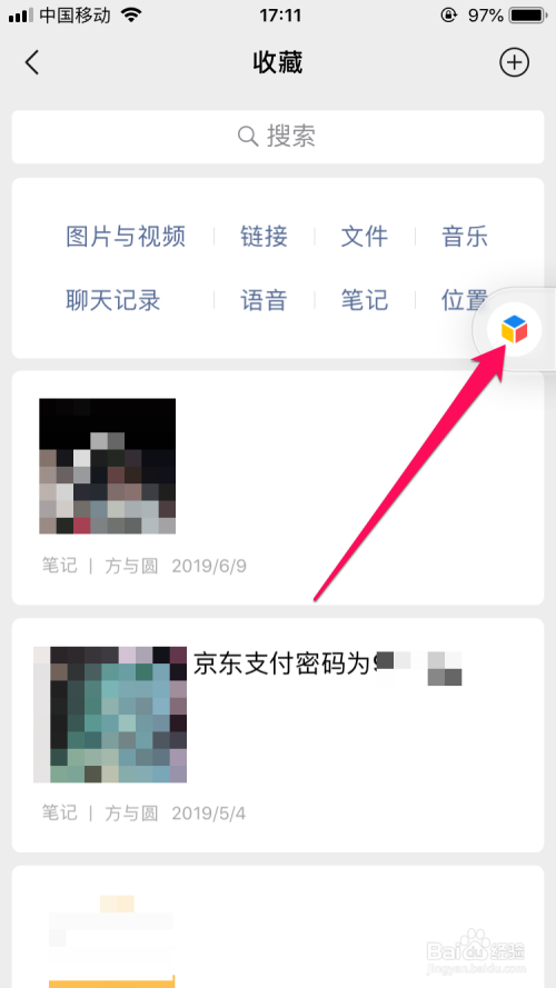 然后打开保藏的界面中选摘要设为浮窗的保藏文件、图片或视频都可以并点击它。
