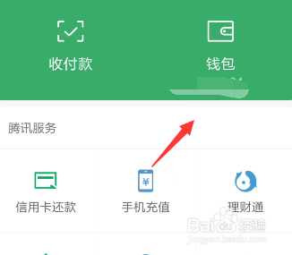在微信下的支付我们依次看到有一个钱包的选项,点击这个钱包。