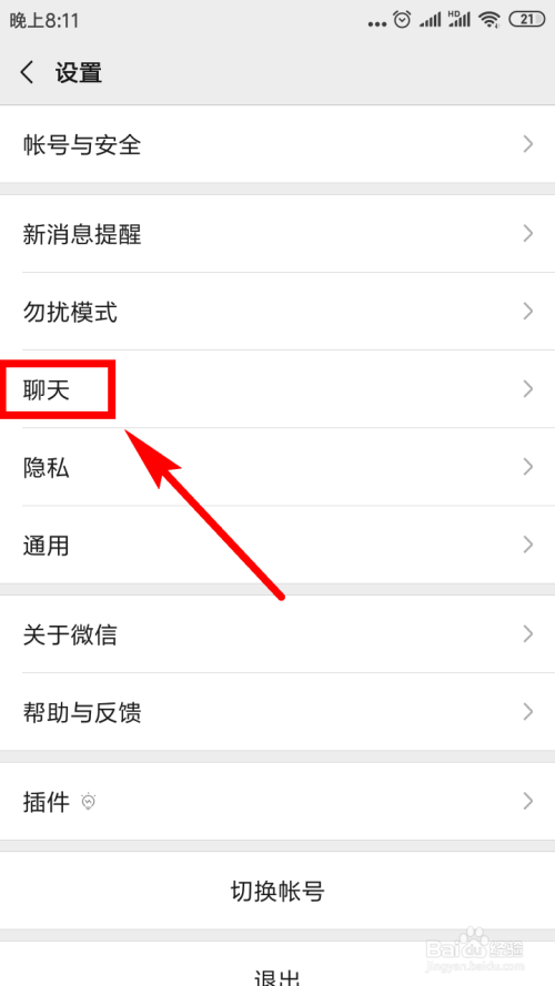 然后在微信的设置列内外点击【聊天】选项。