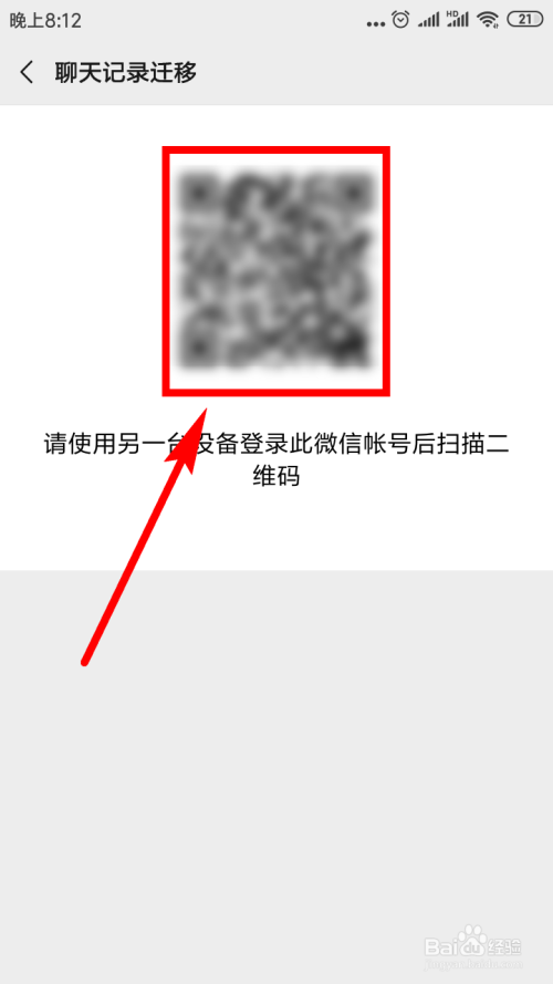 接下来我们在旧手机上便能看到一个二维码,用新手机登录统一个微旌旗灯号,用该微信扫描此二维码便可起头转移了,我们只需期待转移完当作便可。