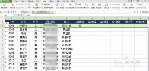 首先,我们可以把敲回车改当作Tab键,每一次按Tab键就标的目的右快速切换到了下一个单位格,以此类推,直到完当作第一位员工的所有信息录入之后,我们再回到第二位员工这里就可以了。
