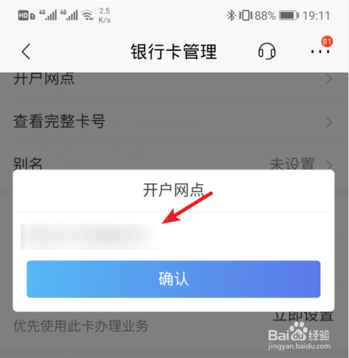 点击进入银行卡办理界面,选择开户网点的选项进入。