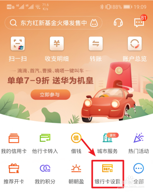 进入本家儿界面后,我们点击银行卡设置的选项进入。