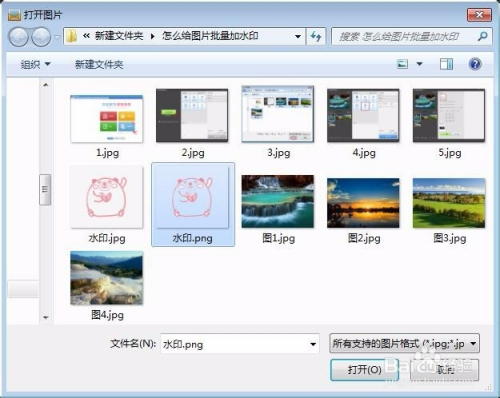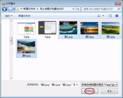 第三步:按住Ctrl键同时选中需要添加水印的图片,单击“打开”按钮。