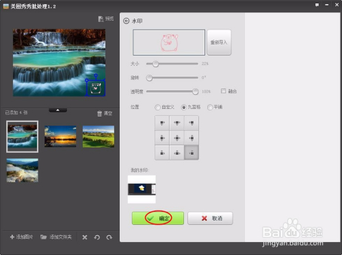 第七步:水印设置完当作后,单击右下角“保留”按钮,完当作操作。