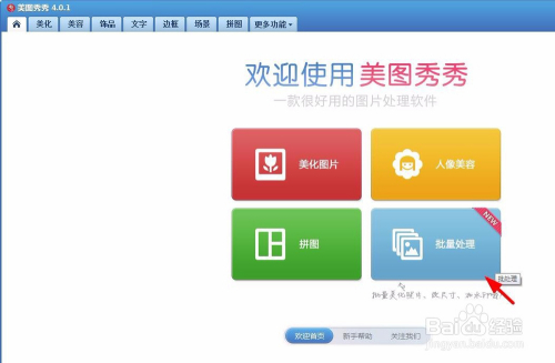 第一步:打开美图秀秀软件,单击选择“批量处置”。