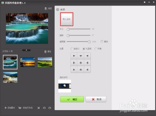 第五步:单击“导入水印”按钮,选摘要添加的水印。