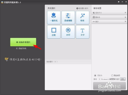 第二步:在美图秀秀批量处置界面,单击“添加多张图片”按钮。