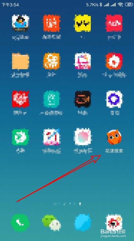 在手机屏幕上摆布滑动,找到安装好的花漾搜刮图标